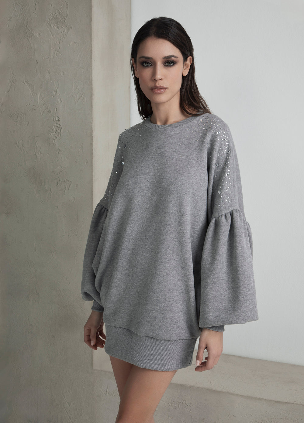 Odi Et Amo abito in felpa con silhouette balloon, caratterizzato da un taglio ampio e avvolgente che garantisce massimo comfort. La costruzione in morbida felpa assicura traspirabilità e praticità d'uso quotidiano. Il design oversized crea un effetto elegante e contemporaneo, perfetto per chi ricerca capi che uniscono funzionalità e stile. Ideale per una vestibilità rilassata senza compromessi sulla qualità costruttiva.